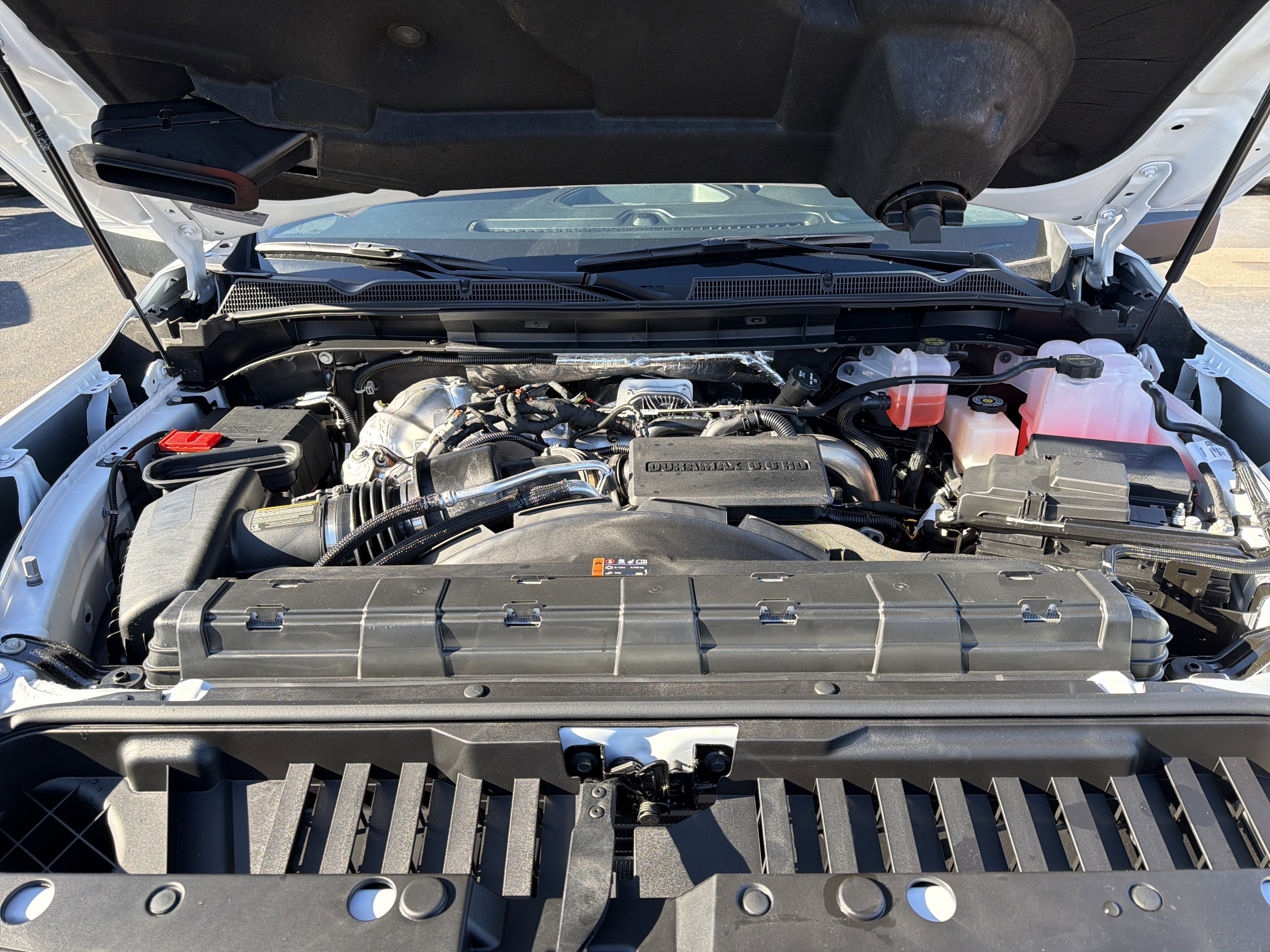 SNOW PLOW PREP/CAMPER PACKAGE includes (KW5) 220-amp alternator, includes increased front GAWR on Heavy Duty models, (NZZ) skid plates (transfer case and oil pan), pass through dash grommet hole and roof emergency light provisions. Contact GM Upfitter Integration at www.gmupfitter.com for plow installation details and assistance. Note: if ordered for Camper usage, recommend ordering (UY2) Trailering wiring provisions, GOOSENECK / 5TH WHEEL PREP PACKAGE -- HITCH PLATFORM TO ACCEPT GOOSENECK OR 5TH WHEEL HITCH. Includes hitch platform with tray to accept ball, stamped bed holes with removable caps installed and bed mounted 7-pin trailer harness (similar to UY2 harness). Includes (CGN) spray-on bedliner. Not available with (ZW9) pickup bed delete.), CONVENIENCE PACKAGE includes (QT5) EZ Lift power lock and release tailgate, (K34) Cruise control, (AKO) tinted glass, (UF2) LED cargo bed lighting, (C49) rear-window defogger and (DBG) outside power-adjustable vertical trailering with heated upper glass , REAR AXLE, 3.42 RATIO, POWER OUTLET, INSTRUMENT PANEL, 120-VOLT (400 watts shared with (KC9) bed mounted power outlet), LPO, BLACK ASSIST STEP (dealer-installed), GVWR, 11,350 LBS. (5148 KG), ENGINE, DURAMAX 6.6L TURBO-DIESEL V8, B20-DIESEL COMPATIBLE (470 hp [350.5 kW] @ 2800 rpm, 975 lb-ft of torque [1322 Nm] @ 1600 rpm) (Includes (K05) engine block heater.), Wireless phone projection for Apple CarPlay and Android Auto, Windows, power rear, express down (Not available on Regular Cab models.).