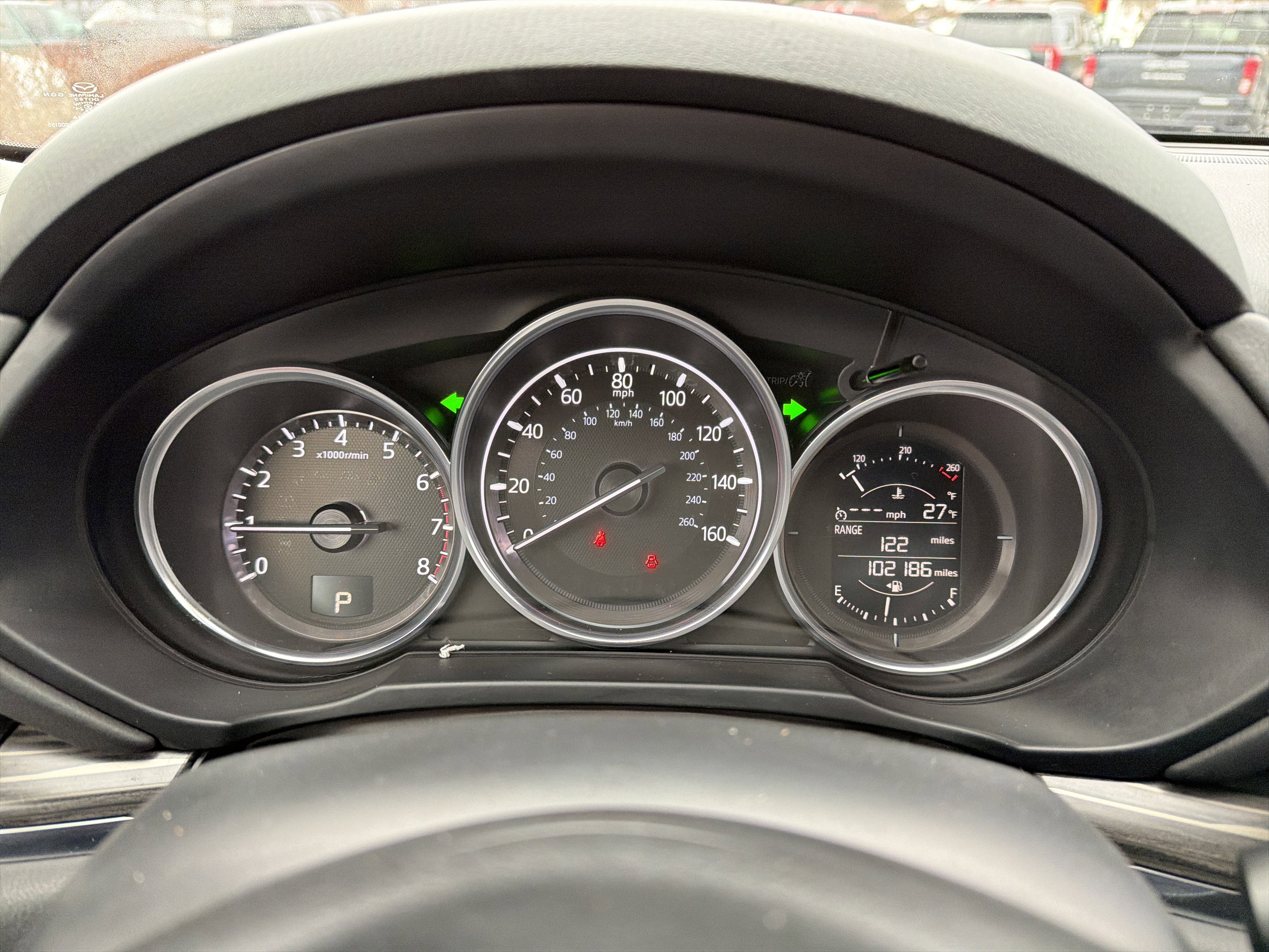 Romeo GM Center Proudly presents this 2017 Mazda CX-5 with 10 Speakers, 19 x 7J Aluminum Alloy Wheels, 4-Wheel Disc Brakes, 4.62 Axle Ratio, ABS brakes, Air Conditioning, Alloy wheels, AM/FM radio: SiriusXM, Auto-dimming Rear-View mirror, Automatic temperature control, Bose 10-Speaker Audio Sound System, Brake assist, Bumpers: body-color, Delay-off headlights, Driver door bin, Driver vanity mirror, Dual front impact airbags, Dual front side impact airbags, Electronic Stability Control, Emergency communication system, Exterior Parking Camera Rear, Four wheel independent suspension, Front anti-roll bar, Front Bucket Seats, Front Center Armrest, Front dual zone A/C, Front fog lights, Front reading lights, Fully automatic headlights, Heated door mirrors, Heated front seats, Heated Front Sport Shape Seats, Illuminated entry, Leather Seat Trim, Leather Shift Knob, Low tire pressure warning, Mazda Navigation System, Navigation System, Occupant sensing airbag, Outside temperature display, Overhead airbag, Overhead console, Panic alarm, Passenger door bin, Passenger vanity mirror, Power door mirrors, Power driver seat, Power Liftgate, Power moonroof, Power steering, Power windows, Radio data system, Radio: AM/FM/HD Modular Audio System w/Bose, Rain sensing wipers, Rear anti-roll bar, Rear reading lights, Rear seat center armrest, Rear window defroster, Rear window wiper, Remote keyless entry, Speed control, Speed-sensing steering, Split folding rear seat, Spoiler, Steering wheel mounted audio controls, Tachometer, Telescoping steering wheel, Tilt steering wheel, Traction control, Trip computer, Turn signal indicator mirrors, Variably intermittent wipers, and Wheel Locks.